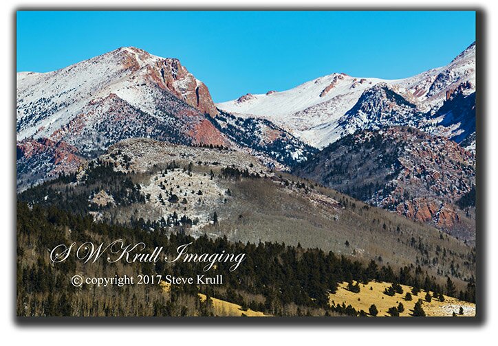 The mine is a ways from there and I wanted to bring in the mountains so I decided on my 200mm lens zoomed in all the way. Pretty sure I got what I was after 🙂 There was also a nice view of the west face of Pikes Peak from there so I grabbed that too.