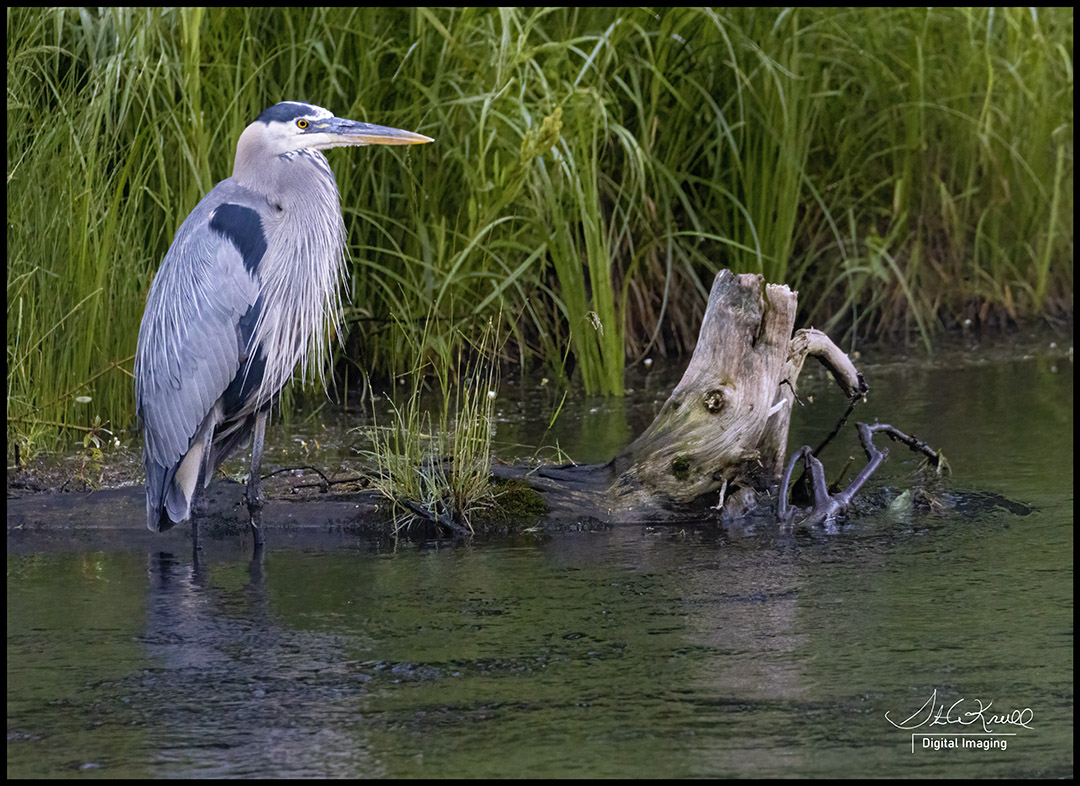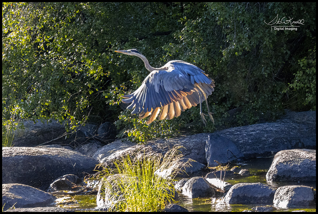Finally as I was ready to exit the canyon I spotted yet another blue heron preening himself on the opposite bank. I decided to shoot a few seconds of video when I saw him do something I’d never seen a heron do before, he spread his wings like a giant buttercup, apparently in an effort to dry out his feathers in the warm morning sun.