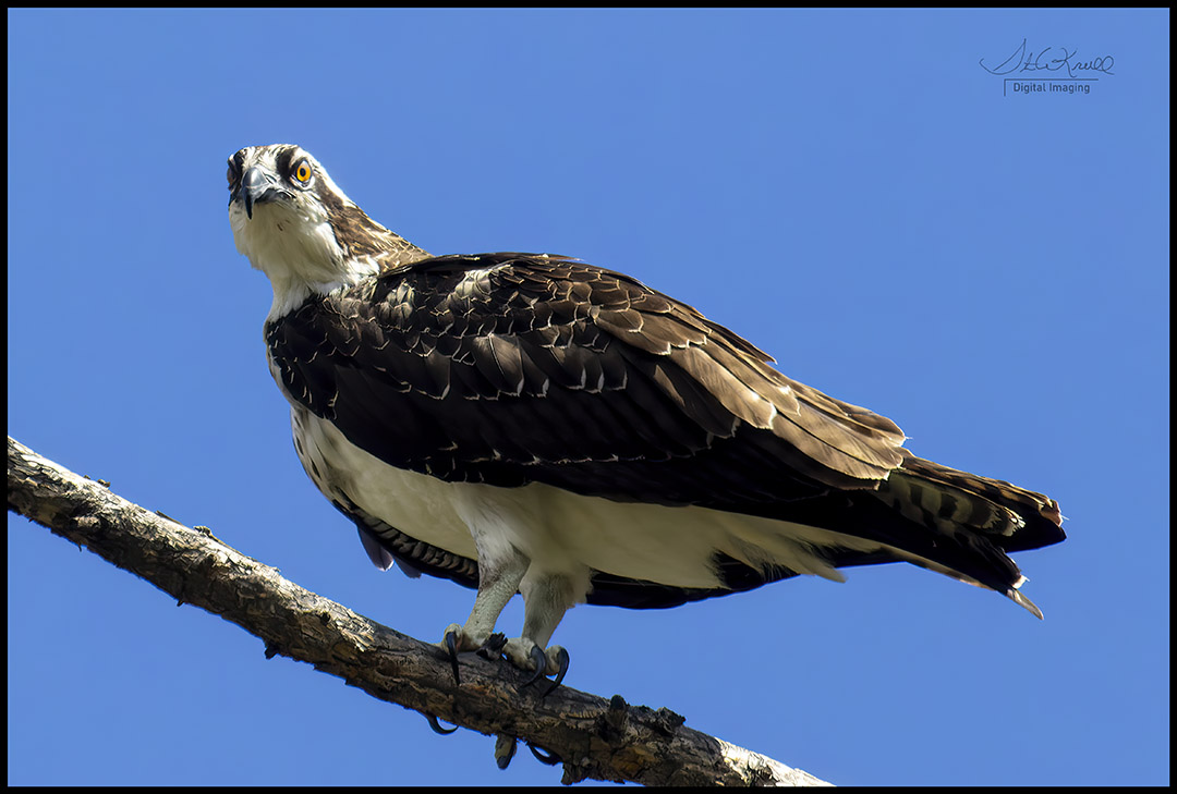 Eventually the pair landed in a tree nearby in much better light and I was able to capture a couple of nice portraits, revealing the fact that we now have two new osprey in the canyon 🙂 That means of course that the pair returned and built a nest somewhere else in the canyon, hatched two eggs and all is right with the world 🙂 I hope to visit the little ones a couple more times before they make the long trip south where they will remain for a couple of years before finding a mate for life and begin the circle of life anew .