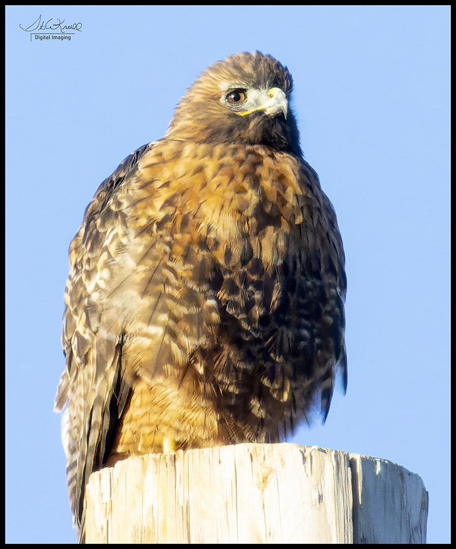 Upon arriving at my desktop I loaded up the interesting new bird and discovered it to be a Cooper’s Hawk. The All About Birds site provided by Cornell Labs identified the raptor for me including a few interesting facts about their lifestyle. They are a forest dwelling bird that feeds on other birds and migrate in the winter along with osprey to South America. According to ABCBirds.org , “Like so many other species, Cooper’s Hawks are harmed by habitat loss, which may limit suitable breeding habitat. Collisions with glass windows, turbines, and poorly lit communications towers also account for many deaths.” Just one more reason that I’m against the wholesale adoption of all those stupid windmills that don’t supply enough power to justify their damage to the landscape.