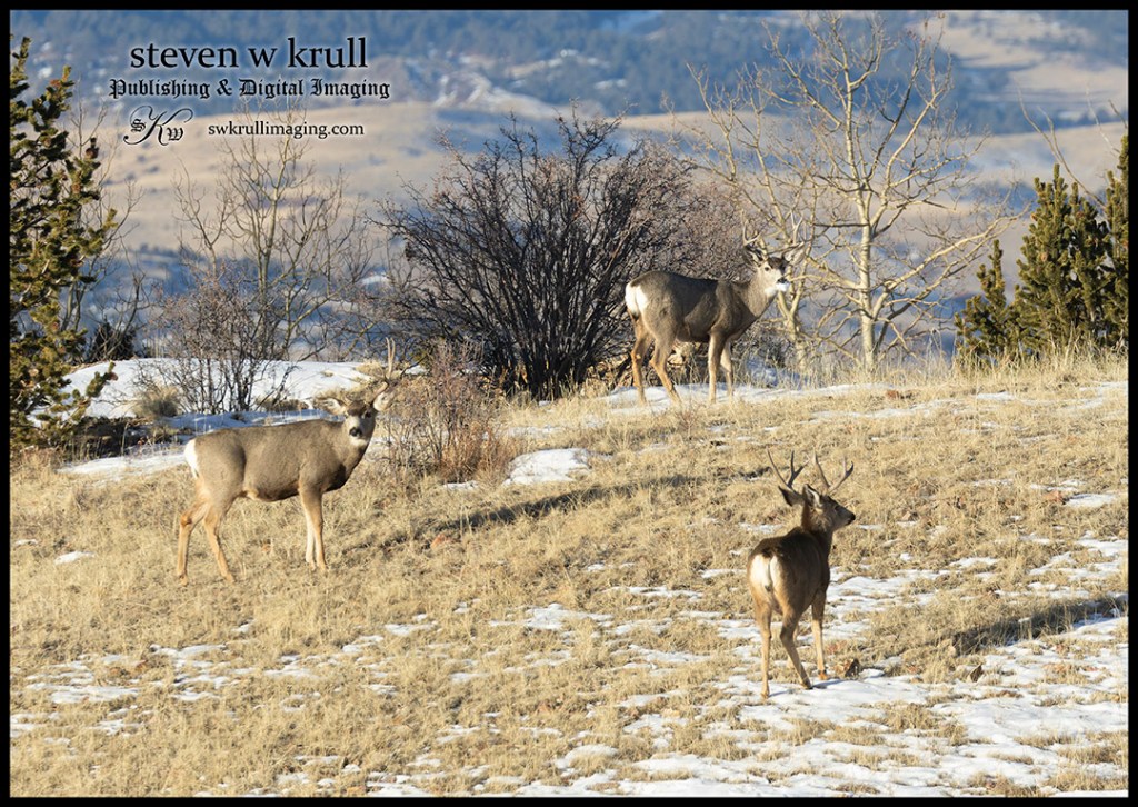 One of them posed for this nice portrait with a snowy background just as the sun began to clear the ridge to the east. I hadn’t seen them in a while and was glad to find them healthy and strong.