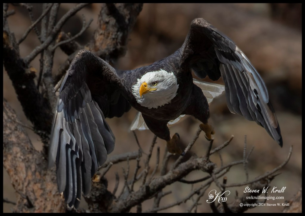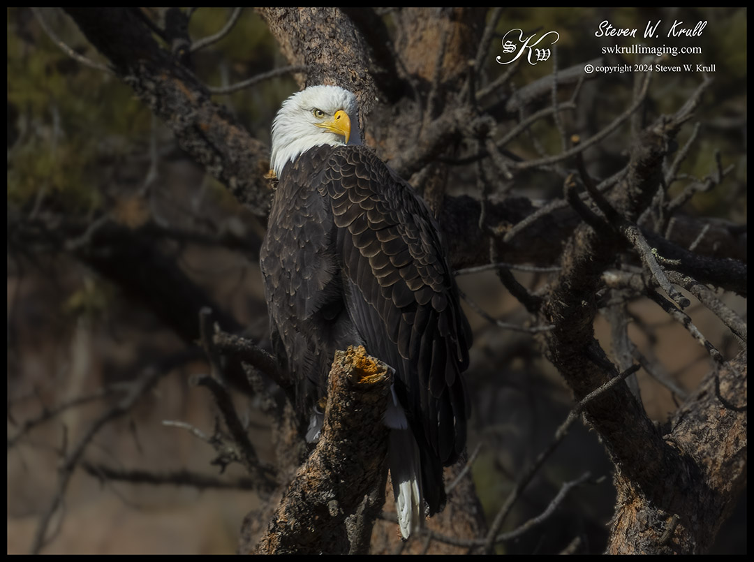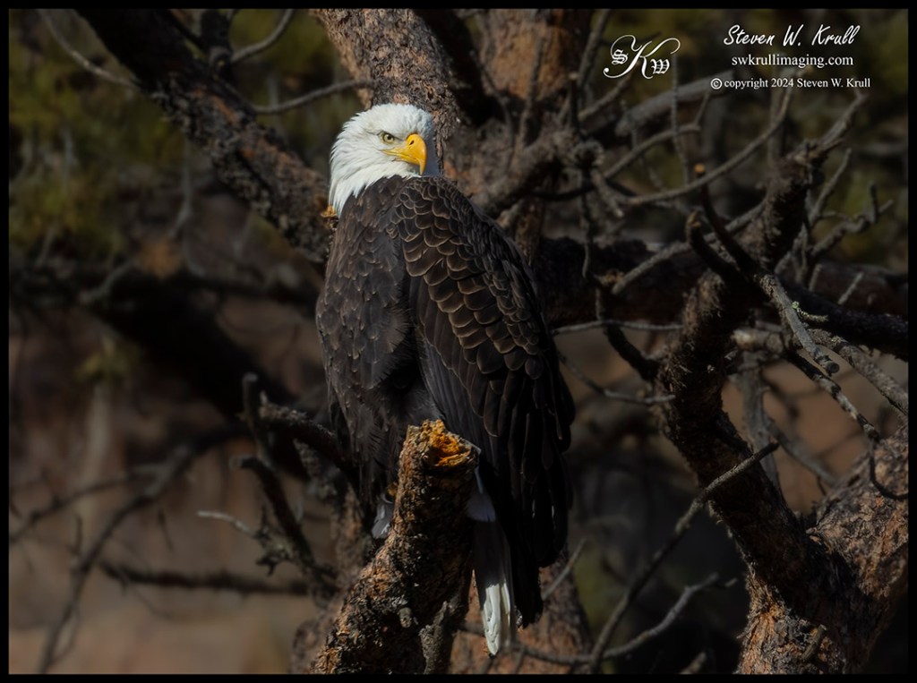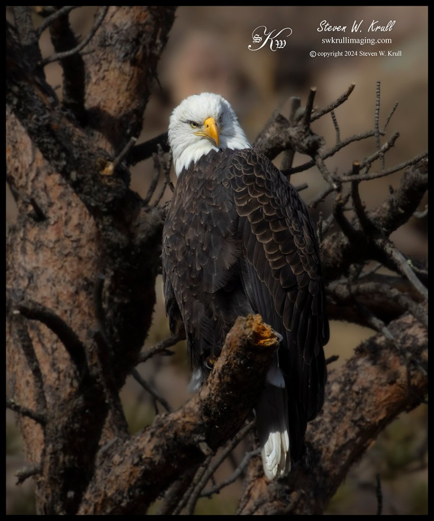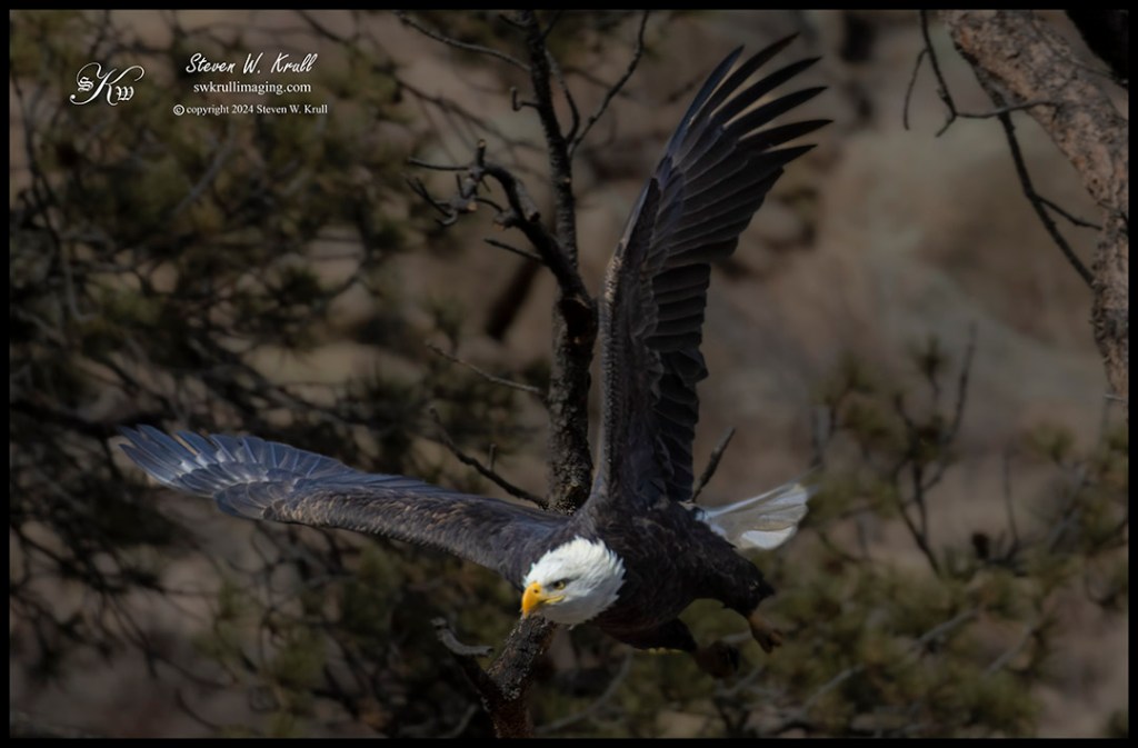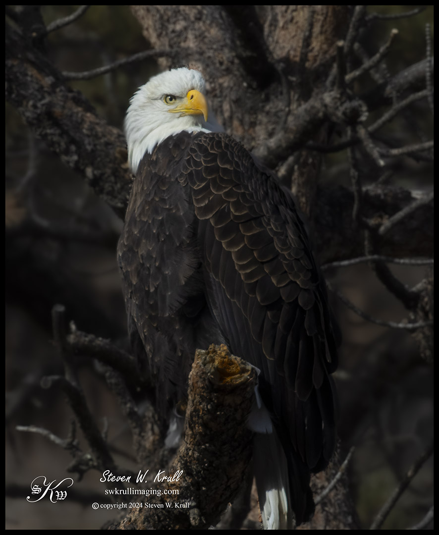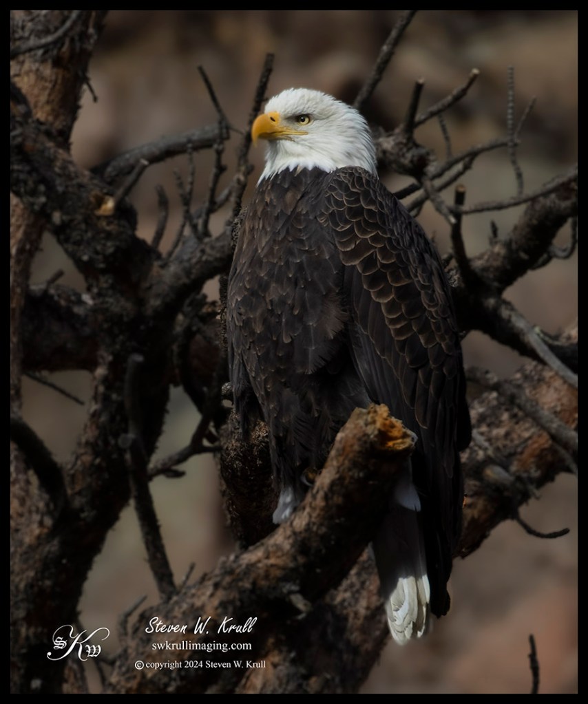 On our second trip through the canyon, we spotted this rather surly looking bald eagle staring down at us. Fortunately, he stayed around for a few portraits before flying upstream for a quieter place to hunt for trout.