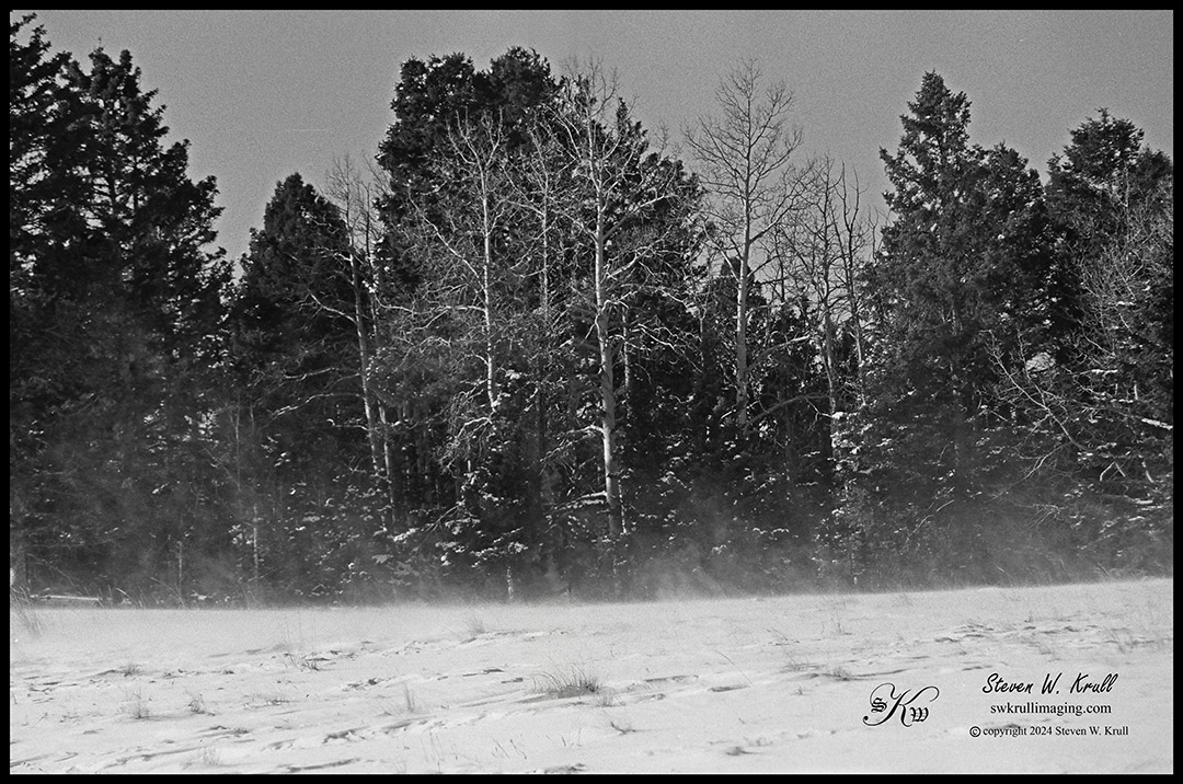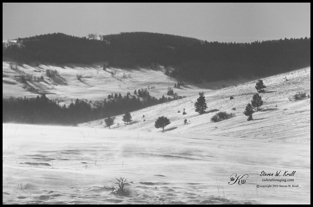 I also had a roll of Ilford FP4 125 speed film loaded in my old Canon A-1, with the intention of shooting some nice bright detailed wildlife images in snow. That never quite seemed to materialize either, but I did get a few captures that I like. Unfortunately, it has been a long time since I have shot film in bright snow and I was too lazy to use my incident meter, which by the way, I had with me at the time. So the result was a lot of underexposed captures.