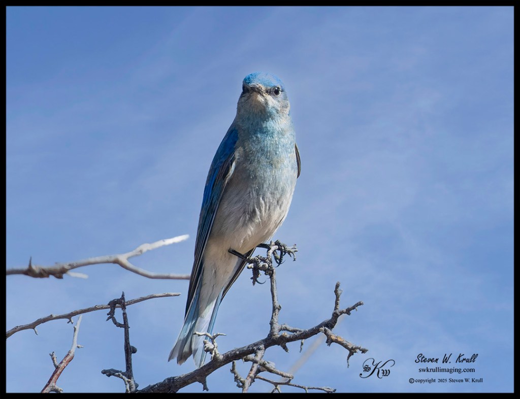In the meantime, mountain bluebirds had come out to sing in the warm morning sunshine. This one stopped nearby to serenade me while I captured a few colorful images.