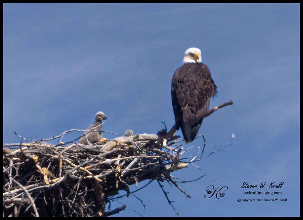 WE HAVE EAGLETS – Mama eagle has remained in the nest long past the projected hatch date, so we assumed there were baby eagles to care for. But was it one, two, three? We didn’t know until now, but I have confirmed there are at least two!