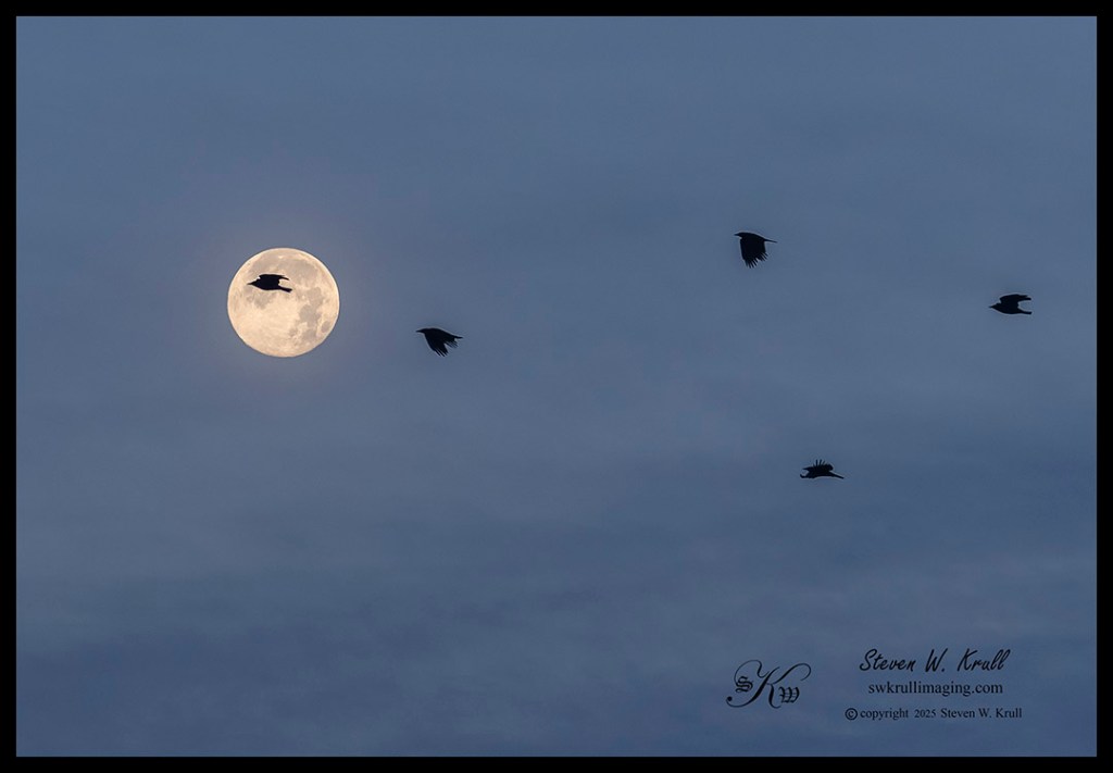 My long lens amplified the beauty of the moon as it neared the western horizon, and I thought the wispy clouds added to the mysteriousness of the scene.