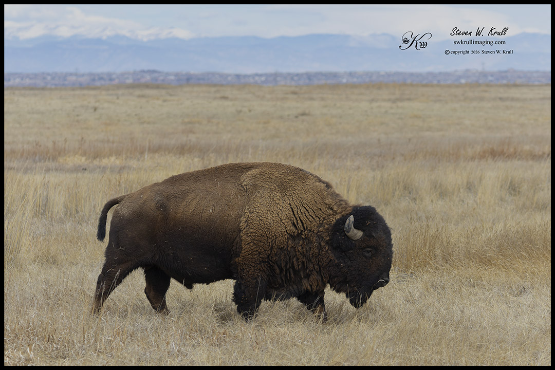 Lighting was a bit muted from a light cloud cover, but Longs Peak and Mount Blue Sky were magnificent in the distance. I really like this shot of a lone bison with Longs Peak in the back to the right. This image was captured with my Canon R7 and 100-400mm L series lens.